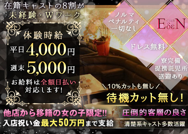 採用しているキャストは20代~30代のキレカワ女子限定。フレッシュ感溢れる瑞々しい20代の若い子から女性の色気が感じられる今が盛りの30代まで、男性の心を楽園に誘うキャストばかり。容姿が全てではなく、おもてなしの気遣いももちろん忘れません。夜の楽園と言ったら極上の美女とのひとときに限りますよね。期待を裏切ることのないキャバクラということを保証いたします。